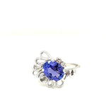 Tanzanite Free Form Flower 14K White Gold Diamond Ring