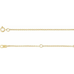 Refined simplicity defines this 14K yellow gold cable chain, crafted with meticulous attention to detail. The slender 1mm design offers understated sophistication, whether worn alone or as an elegant showcase for a treasured pendant. Its lustrous polished finish reflects timeless craftsmanship, while the spring ring closure provides practical flexibility with adjustable lengths of 16, 17, or 18 inchesβ€”ensuring a perfect fit for any occasion.