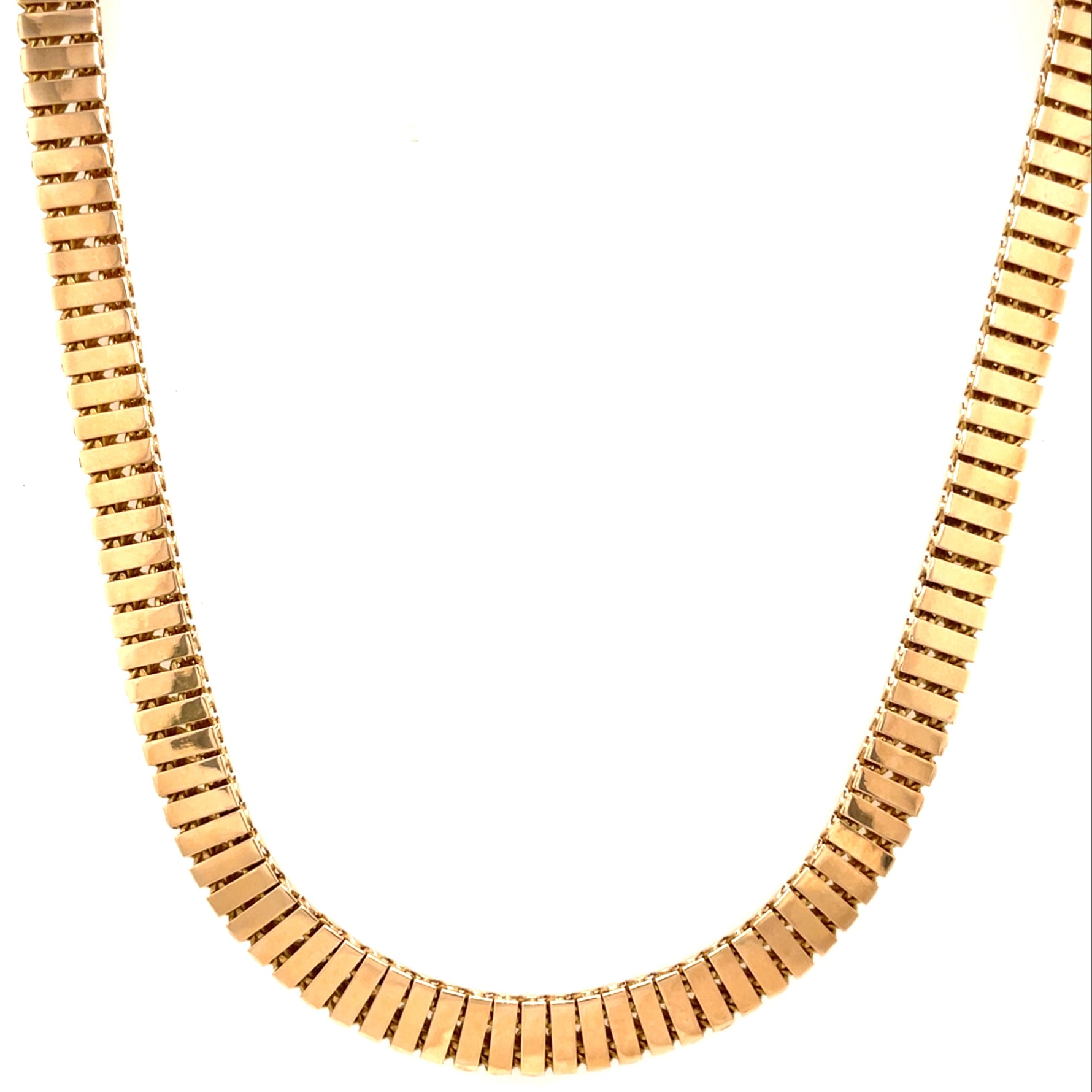 Own the room with this bold 18K Yellow Gold Necklace from our exclusive Estate Collection. Commanding attention with its distinctive beaded links, this fearless 18-inch piece refuses to blend in. This reversible necklace adds enigmatic style to your collection and is finished with a hidden engraved box clasp for added intrigue, while dual security featuresβ€”a safety chain and spring ringβ€”ensure this statement maker never leaves your side. Stamped 800 for undeniable authenticity, this is jewelry for those who dare to stand out.