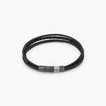 Ruthenium plated sterling silver Gear Click bracelet with black leather (Size: M)
