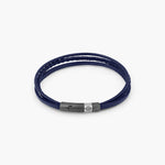 Ruthenium plated sterling silver Gear Click bracelet with blue leather (Size: M)