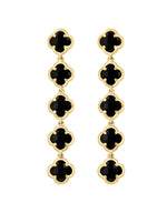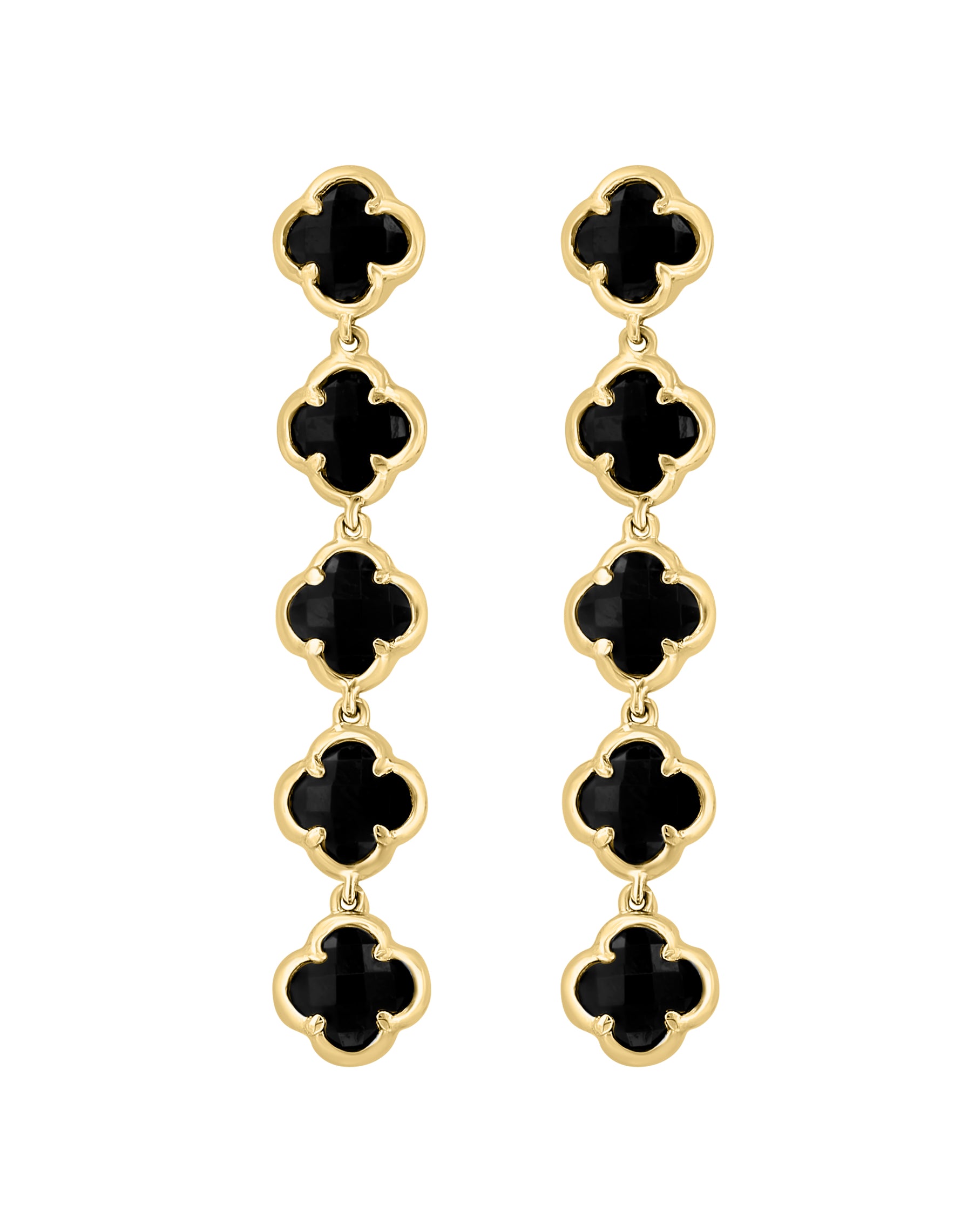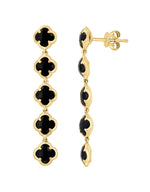 Ladies Onyx Quatrefoil 14K Yellow Gold Earrings with Black Onxy in Prong Setting 4.60 ctw