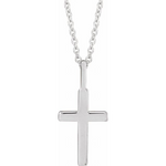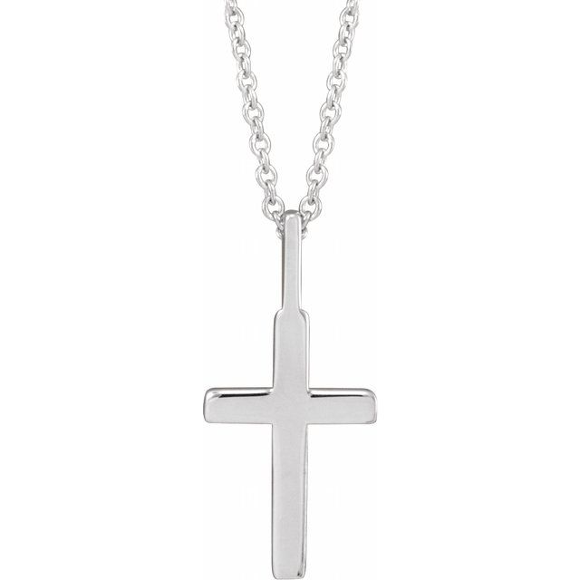 14K White Gold Knife-Edge Cross Pendant, 23 x 13mm, with bail & featured on Adjustable Cable Link Chain 1.13mm with Spring Ring, Adjustable 16-17-18 inch length